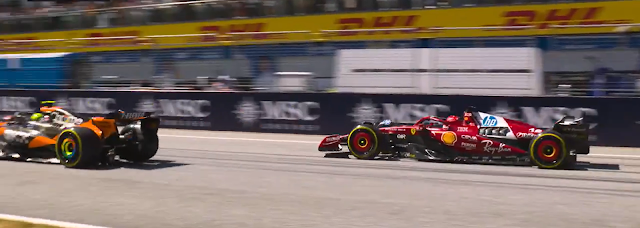 Leclerc, que comenzó desde la primera fila, perdió la P2 en los primeros metros ante el McLaren de Oscar Piastri. El piloto del Cavallino Rampante, a pesar de la posición perdida en la largada, corrió una carrera sólida que terminó detrás del dúo de papayas.